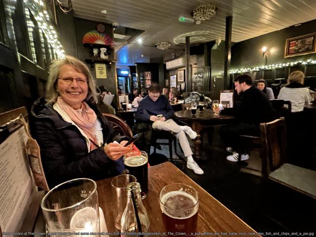 Soho London at The Crown - a pub where we had some nice cask ales, fish and chips, and a pie.